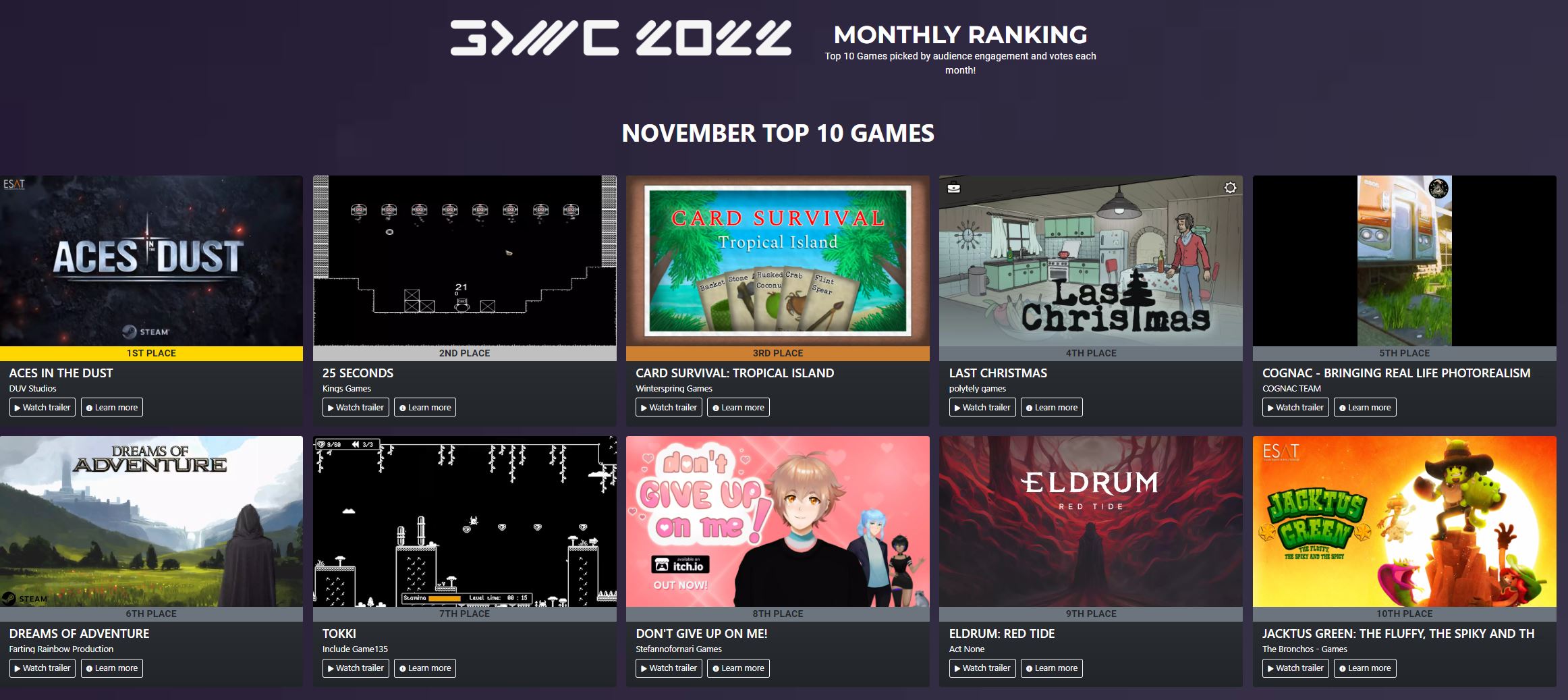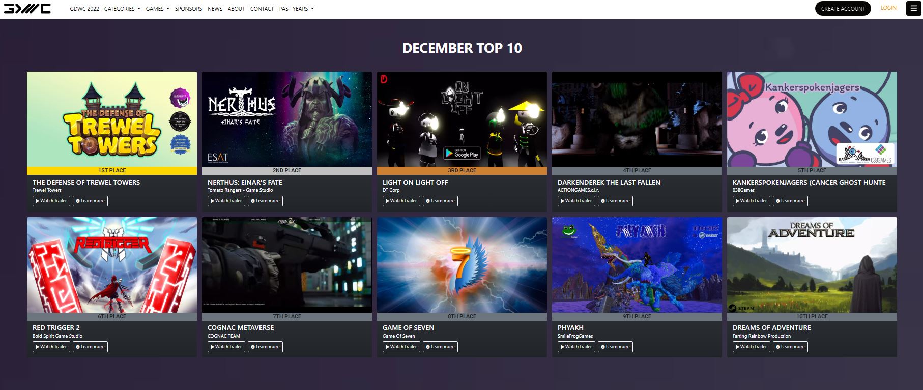 La audiencia de la GDWC elige los videojuegos desarrollados por nuestros alumnos como proyectos finales de carrera con una calidad AAA , entre los mejores puestos de sus TOP 10, durante meses .